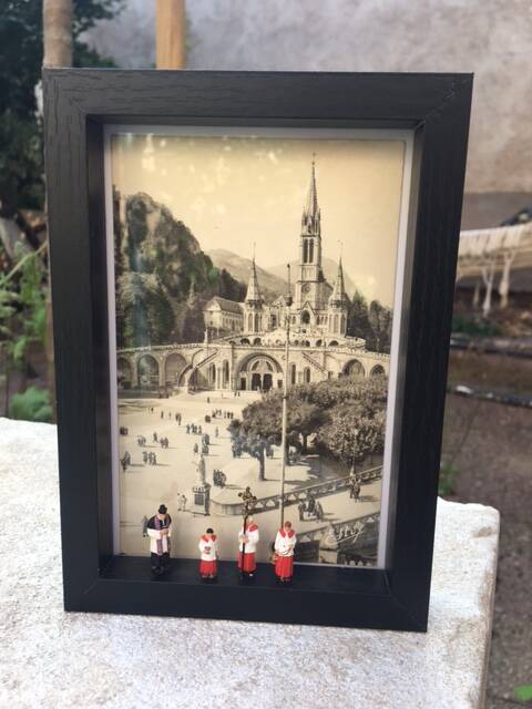 Pierre (maitre des lieux) exprime au travers de miniature au 1/87 ième (une échelle privilégiée aux trains électrique de notre enfance) et compose des scènes de vies futiles, pleines d’humour... Précieusement abritées sur socle de bois et cloche de verre.
